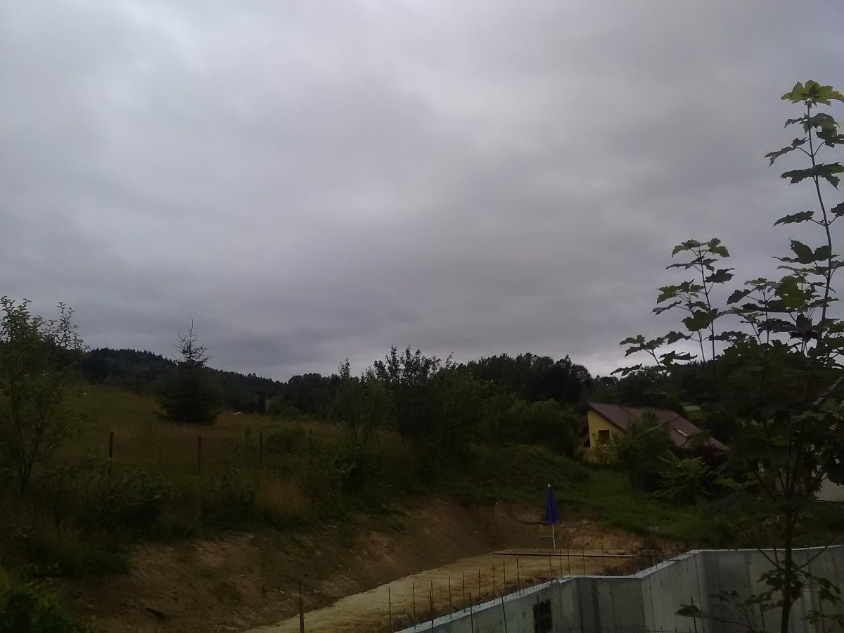 Oblačnost 98,4%, zákl.oblačnosti 1296,96m.n.m., tlak 1012,6hPa→, dohlednost 30km, rel.vlhkost 71,1%, abs.vlhkost 10,81g/m3, mírný ZJZ vítr 238° 5,9m/s(4 Bft), poc.teplota 14,44°C, ochl.větrem 17,16°C, tepl.ros.bodu 12,46°C, tepl.mraků 10,10°C, HUMIDEX 22(přijatelná hodnota), délka dne u nás = 16hod.5min.56vt.(67,2%dne), včerejší průměrná teplota = 19,23°C.