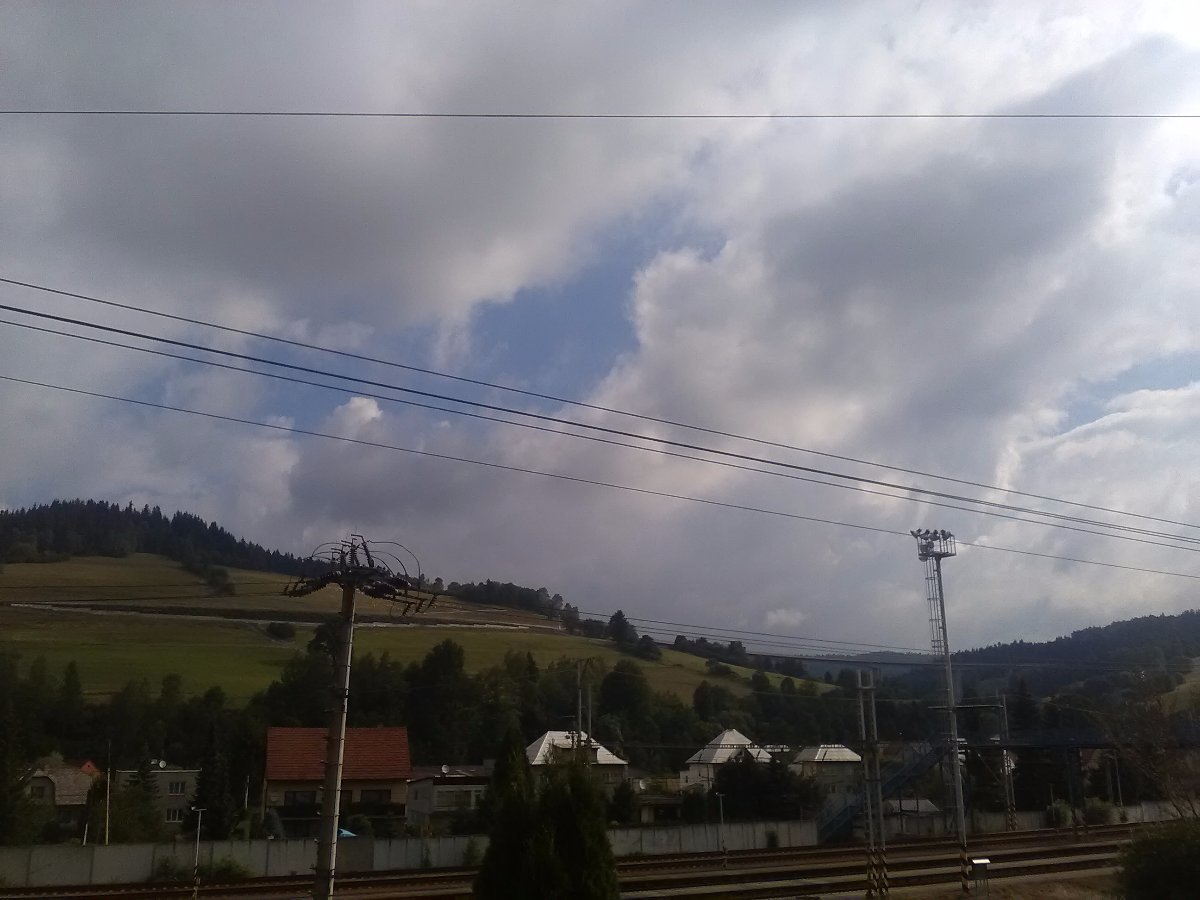 Oblačno až zataženo, řekl bych. Sem tam kape. Tlak 1020 hPa, vlhkost 50%, vítr S.