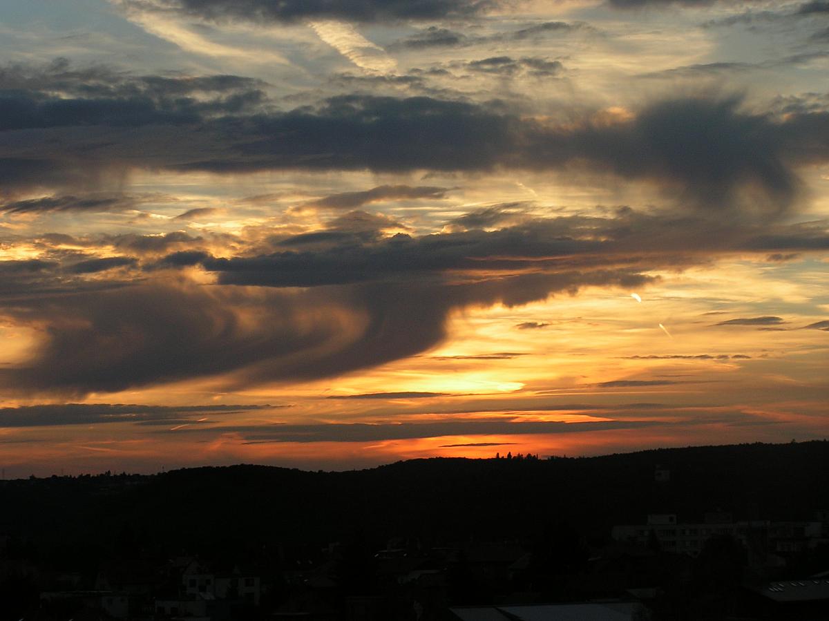 Skoro jasno, klidno, tlak 1013 hPa. Foto: večerní oblačnost
