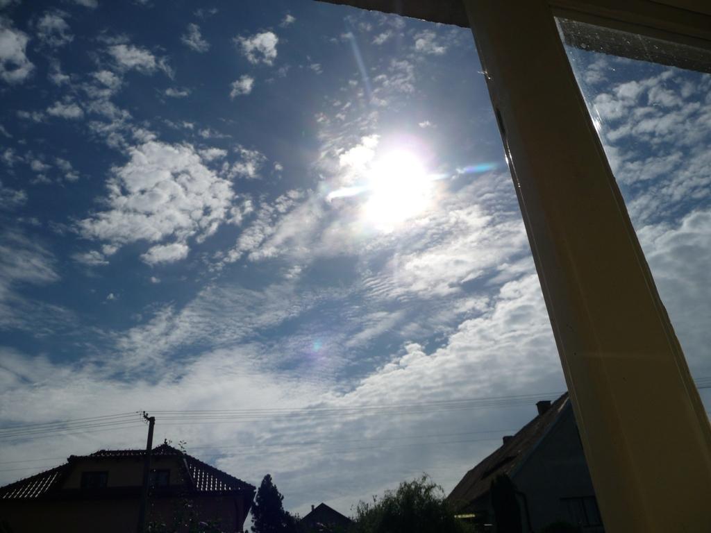 Skoro jasno(1/8), tlak 1023,1hPa, viditelnost 40km, vlhkost 41,3%, vítr ZJZ 257° 4,9m/s(2 Bft), zákl.mraků 2160m.