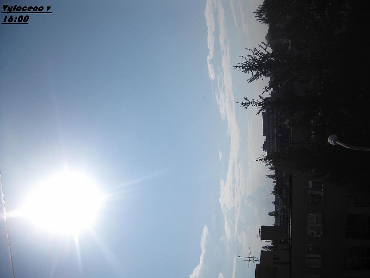 Skoro jasno(2/8), tlak 1019,8hPa, viditelnost 45km, vlhkost 38,8%, vítr JV 130° 6,7m/s(4 Bft), zákl.mraků 2378m.