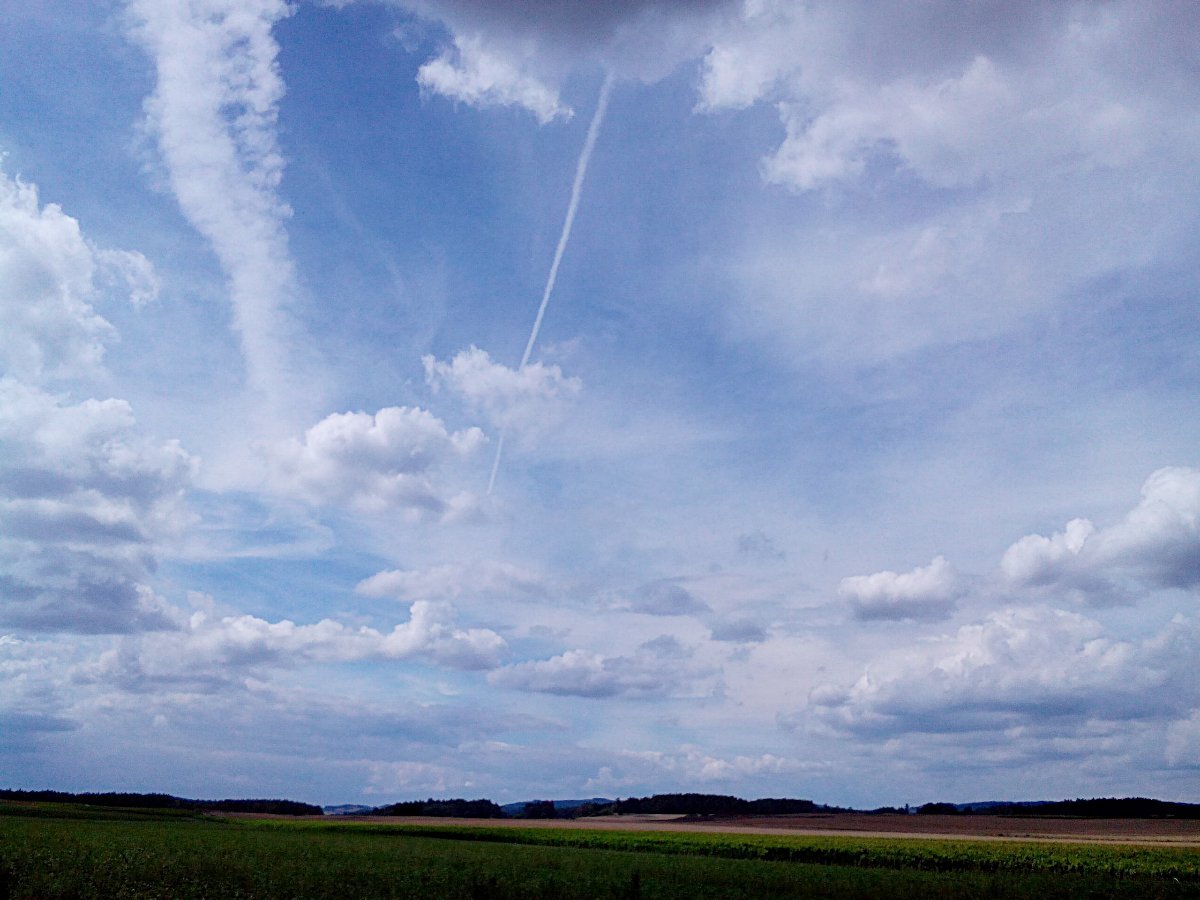 Začíná se to vybírat, vítr čerstvý, tlak 1003.1 hPa, vlhkost 49% .