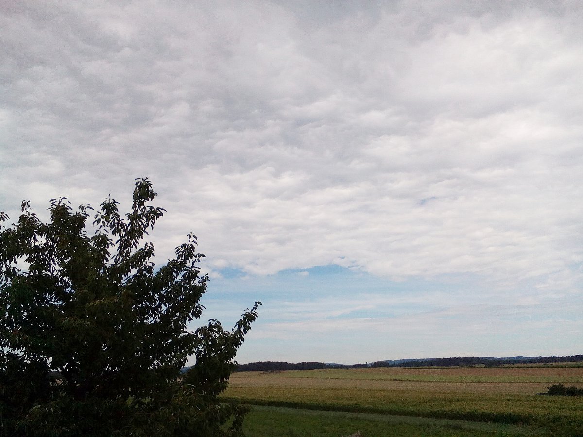 po ranním dešti se vyjasnilo a teplota jde opět nahoru, teď se začala tvořit první kupovitá oblačnost, fouká JZ větřík
