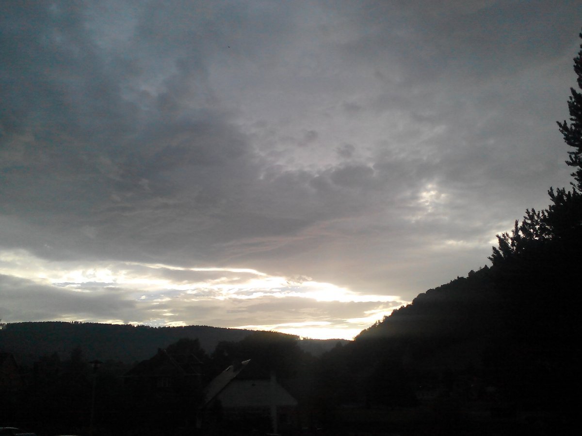 PO odpoledních přeháňkách. Tlak 1017 hPa, vlhkost 83%, větřík 2 m/s od JJV