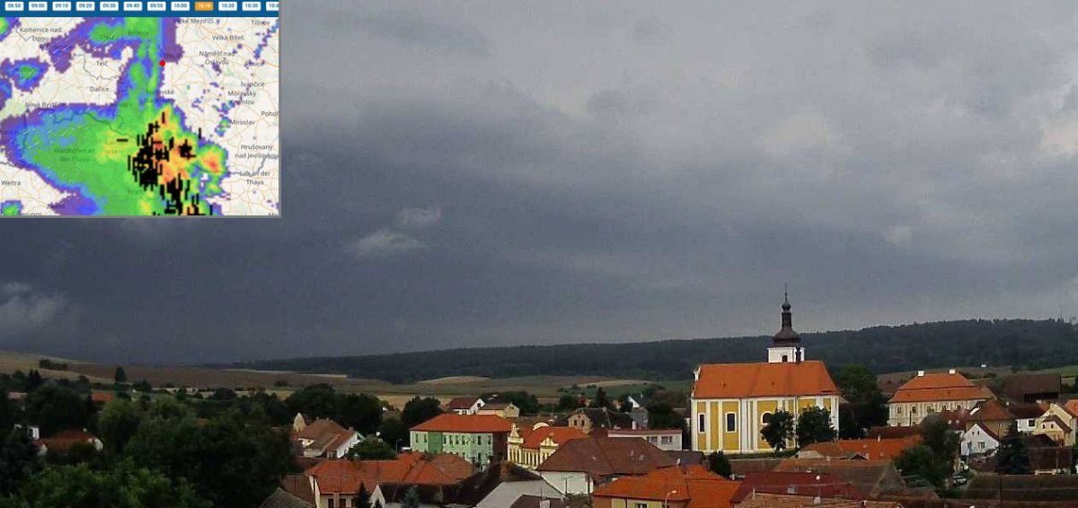 Blíží se bouřka. Severozápadní vánek 3,6km/h, vlhkost 81%, tlak klesá 1015hPa.