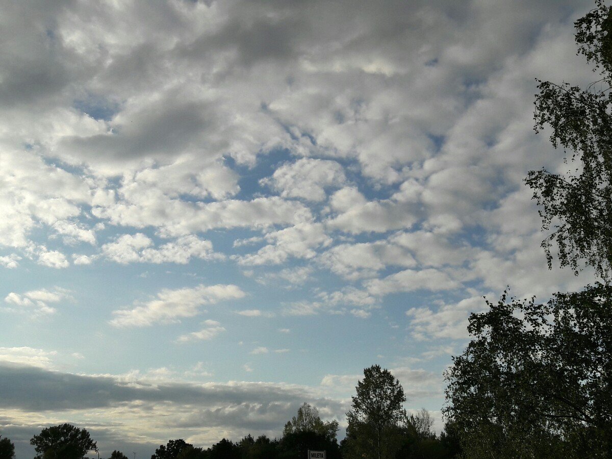 přes den už bez srážek, ubývání oblačnosti, nyní krásná kupovitá oblačnost JV směrem