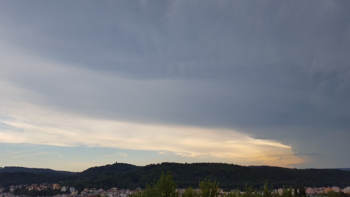 Tlak 1014 hPa, vlhkost 57%, slabý vítr 4.5 m/s od J