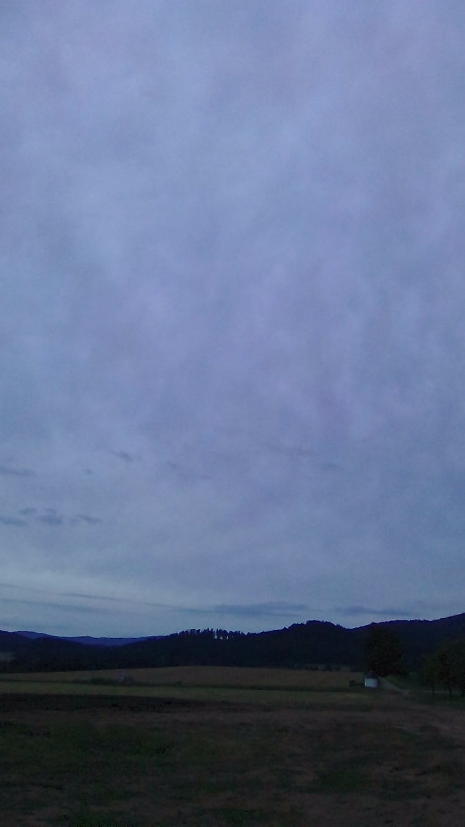 Klidné chladné ráno, tlak 1020.5 hPa, vlhkost 73% .