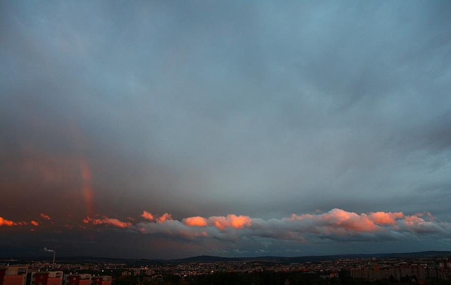Fronta přešla, nárazy větru před frontou dosáhly až 70 km/h, teď již hezký západ Slunce
