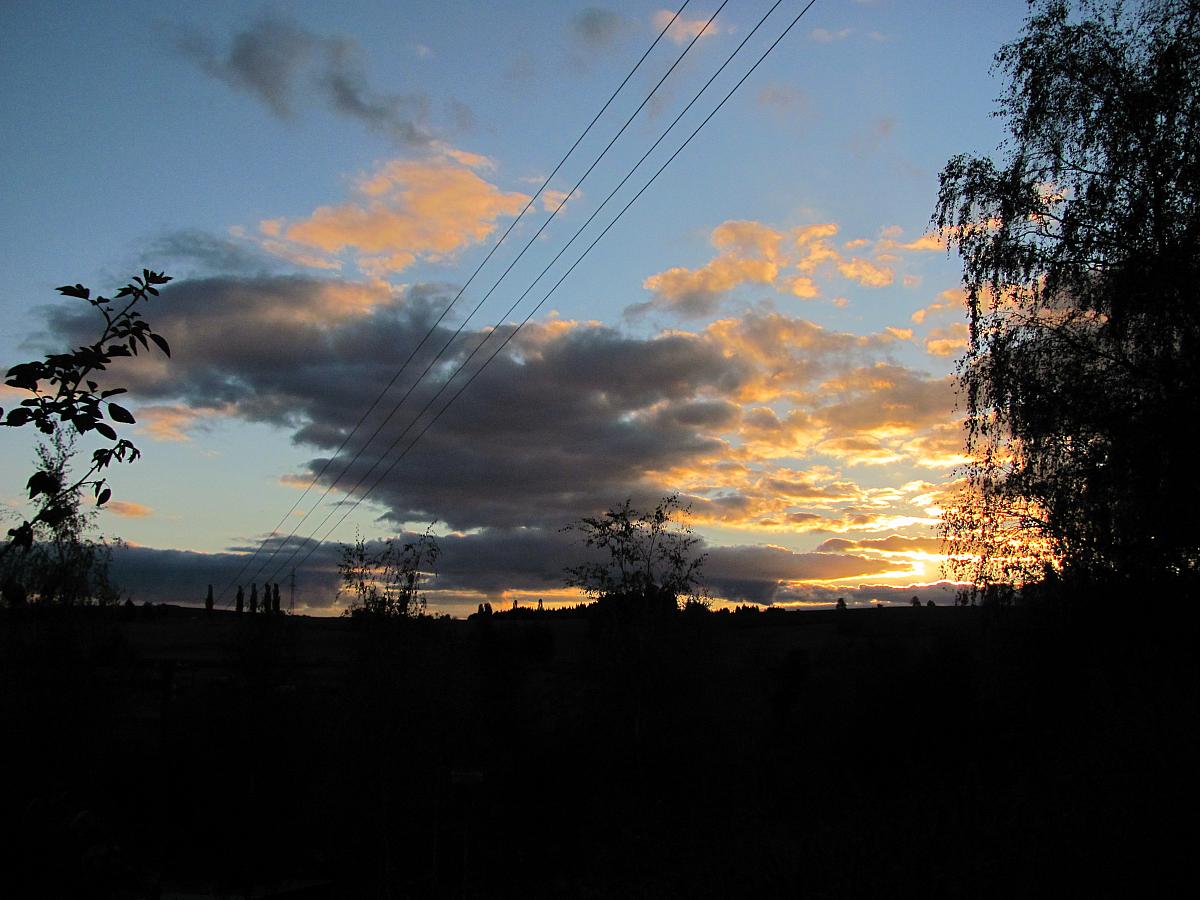 Po dopoledním silném dešti se oblačnost protrhala až na plolojasno (foto). SZ větřík, tlak 1011 hPa (slabý vzestup).