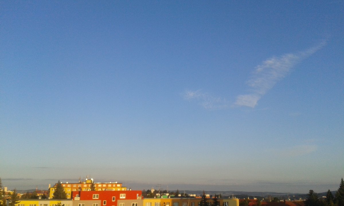 Tlak 1011 hPa, vítr SZ 0,8 m/s.