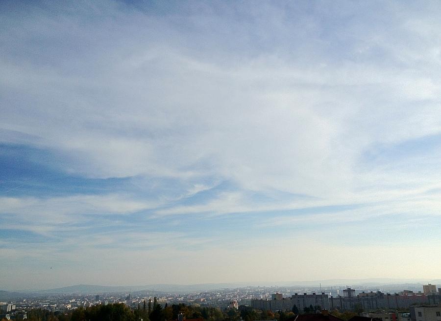Skoro jasno, tlak 1020,3hPa, viditelnost 35km, vlhkost 56,7%, vítr JV 124° 3,7m/s(2 Bft).