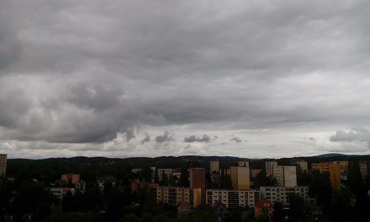 zataženo, přeháňka (8/8) > vítr: S, 1 m/s (cca 4 km/h) | tlak: 1007,3 hPa | vlhkost: 84 % | srážky: 4,4 mm / za 1 h.: 3,6 mm
