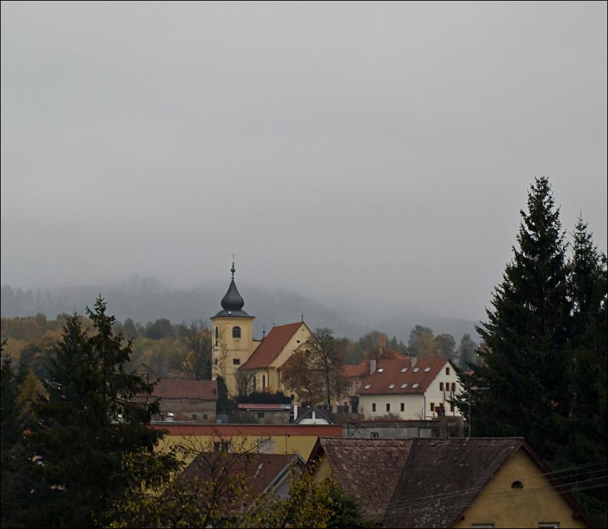 Mlha, mrholí, tlak 1011,7hPa, dohlednost 2km, vlhkost 95,7%, vítr Z 264° 2,8m/s(2 Bft).