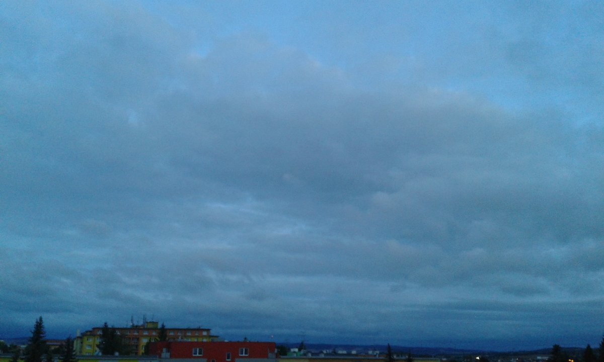 Dnešní maximum bylo 21,7°C. Vane mírný severozápadní vítr 18,7km/h, tlak stoupá 1011hPa, vlhkost 69%.