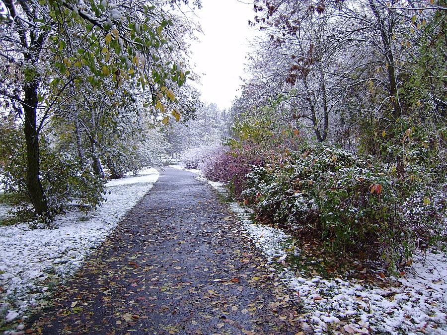 Již jen sněží a už se začíná sníh držet.Je to letošní první sněžení a tvorba sněhové pokrývky.
