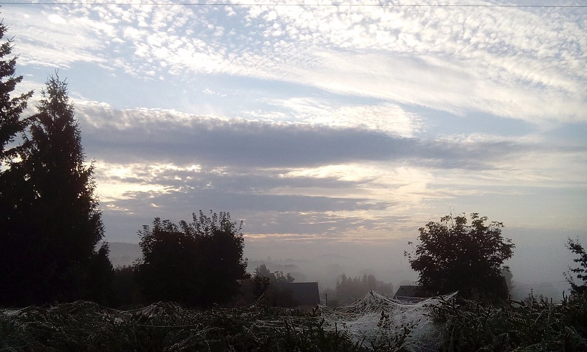 Oblačnost 98,7%, zákl.oblačnosti 653,49m.n.m., tlak 1027,0hPa→, dohlednost 20km, rel.vlhkost 92,3%, abs.vlhkost 8,51g/m3, SSV vánek 31° 1,2m/s(1 Bft), poc.teplota 8,54°C, wind chill 9,65°C, tepl.ros.bodu 8,50°C, tepl.mraků 7,32°C, délka dne u nás = 11hod.53.min.23vt.(49,4%dne), HUMIDEX 10,32, včerejší průměrná teplota = 13,03°C.