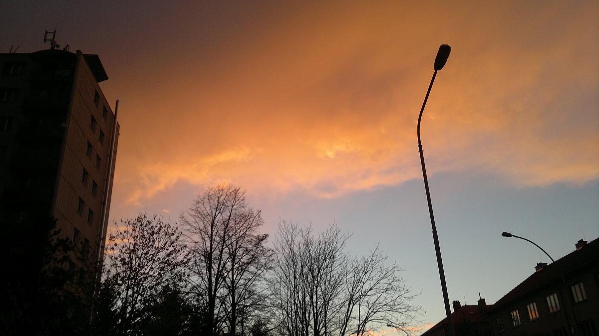 tlak 1007 hPa,bezvětří a sluníčko šlo spát za paskovský komín