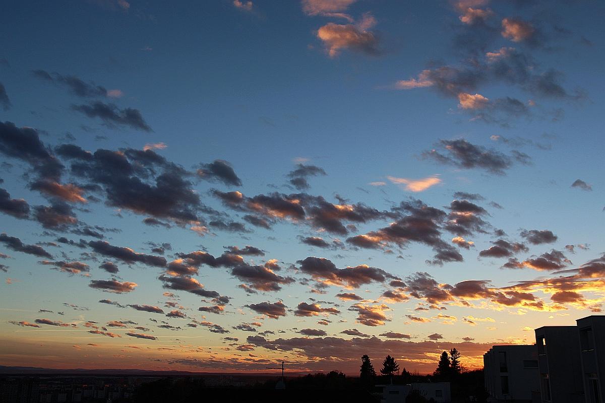 Nebylo tu dnes ani 9°C...Šedý den a večer hezký západ slunce na horizontu Ještědského hřebene...