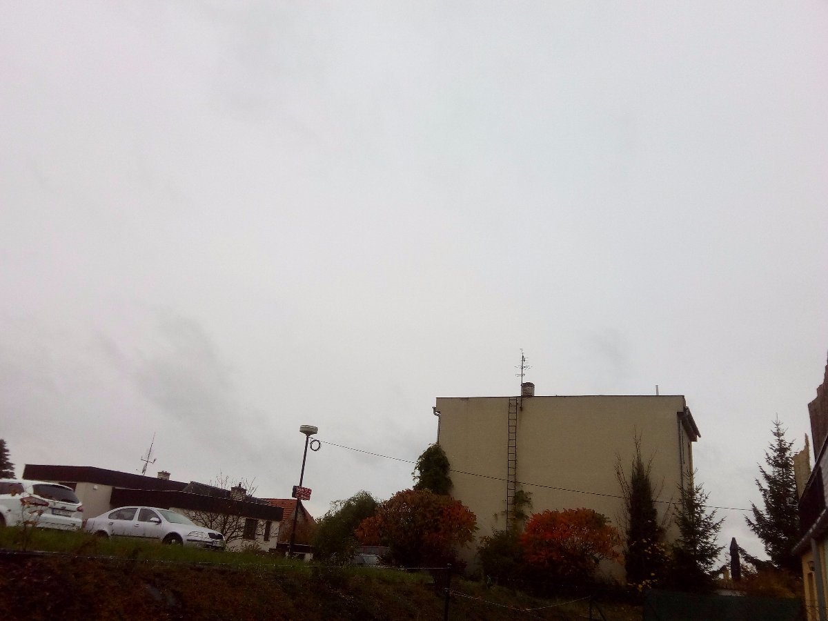 Prší(1,9mm/hod.), oblačnost 100%, zákl.oblačnosti 421,64m.n.m., tlak 1016,3hPa↓, dohlednost 3km, rel.vlhkost 98,9%, abs.vlhkost 9,42g/m3, slabý SZ vítr 308° 4,0m/s(3 Bft), poc.teplota 7,49°C, wind chill 5,90°C, tepl.ros.bodu 10,03°C, tepl.mraků 9,26°C, ozon 303D.U.(+3%,normální stav), HUMIDEX 11,48°C.