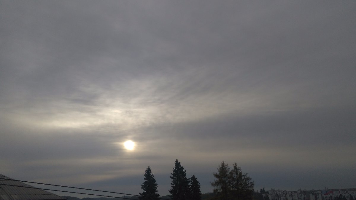 Už se otepluje. Silnice kluzké. V 760 m.n.m. se sněhový poprašek drží. Tlak 1002 hPa, vítr S, srážky 0,2 mm.