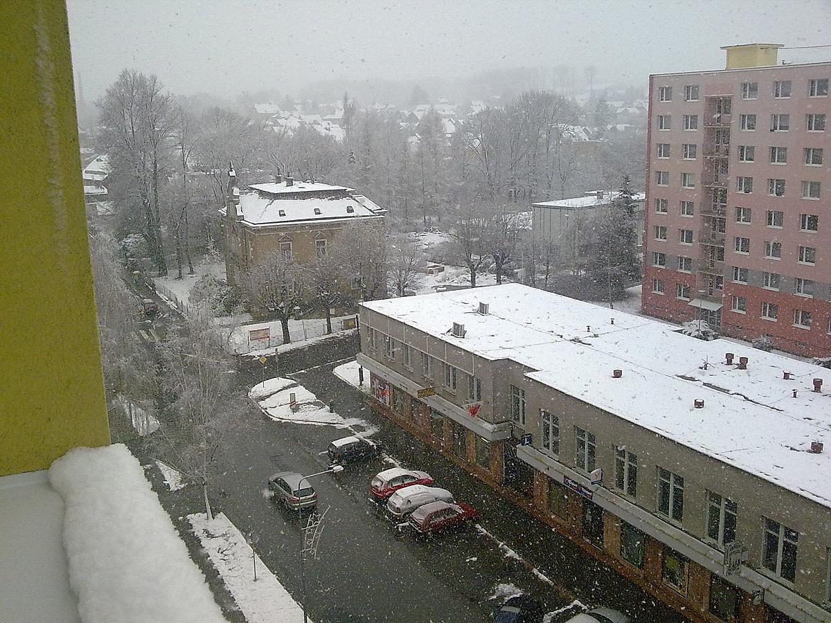 Teplota okolo 1.3°C, vlhkost 94%, sněží již od ranních hodin. Celkové srážky dnes 10.4mm.