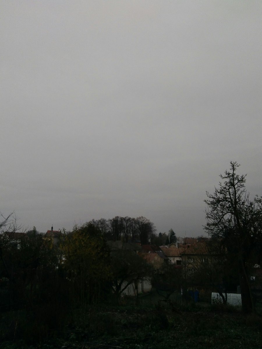 Převážně oblačno, klidno. Tlak 1021 hPa, vítr JZ .