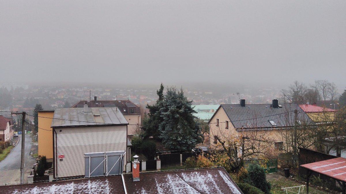 Hezky. Tlak 1021 hPa, vlhkost 90%, vítr SZ.