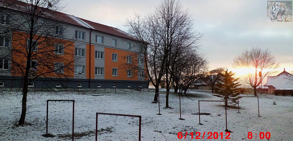 Oblačnost se od západu protrhává, ranní sněhová přeháňka přinesla 2 cm sněhu (foto sněhová přeháňka je aktuálně na Radyni).