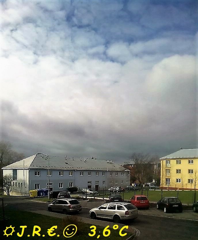 Slabý JZ vítr, jen občas z mraků vypadna sněhová krupka.