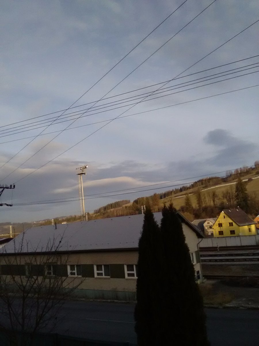 Oblačnost 80,9%, zákl.oblačnosti 1205,50m.n.m., tlak 1013,7hPa↓, dohlednost 18km, rel.vlhkost 78,8%, abs.vlhkost 4,03g/m3, slabý VSV vítr 62° 5,1m/s(3 Bft), poc.teplota -5,05°C, wind chill -3,97°C, tepl.ros.bodu -2,49°C, tepl.mraků -4,68°C, délka dne u nás = 8hod.37min.33vt.(35,7%dne), HUMIDEX -1,89°C, včerejší průměrná teplota = -1,58°C.