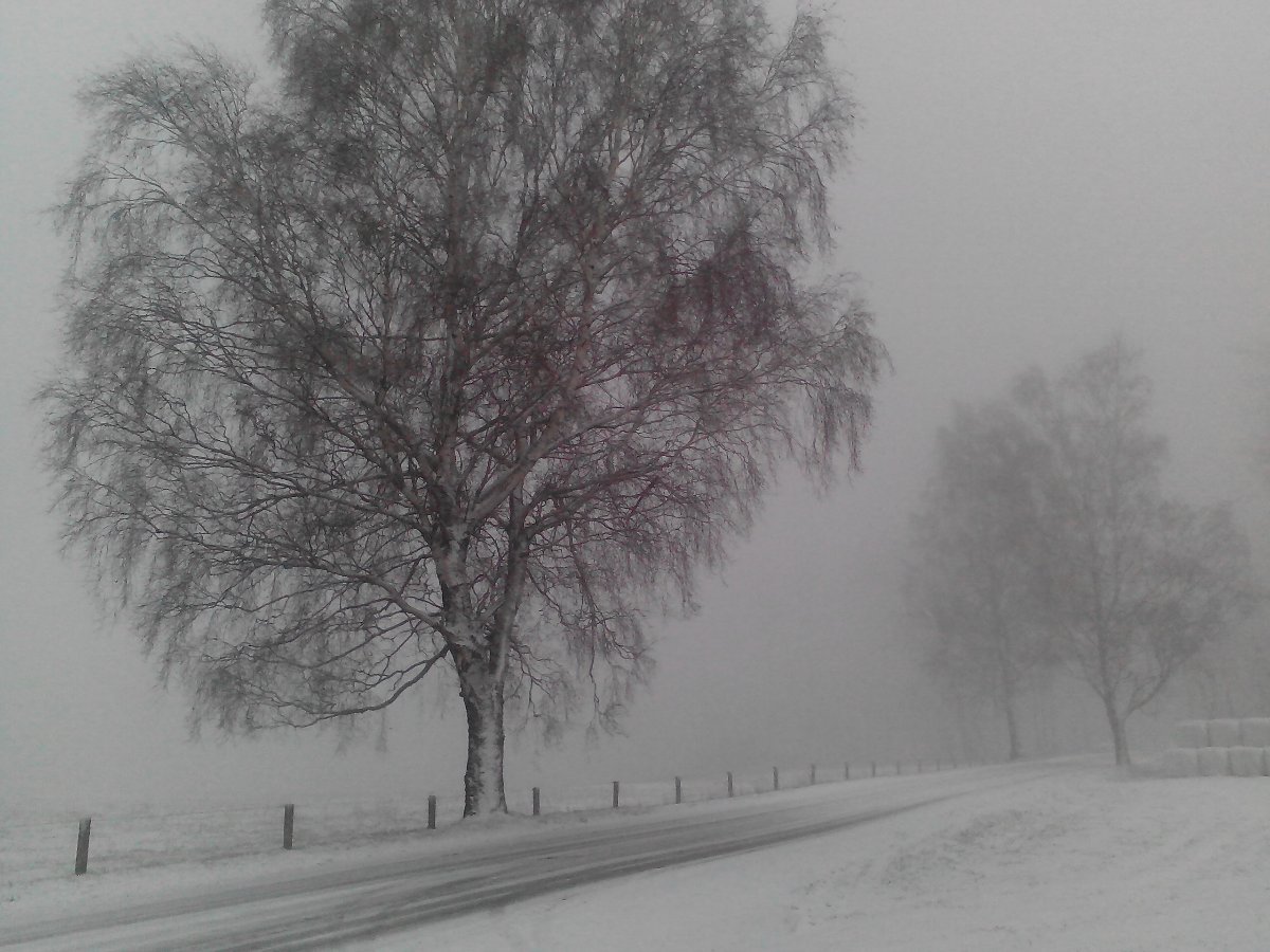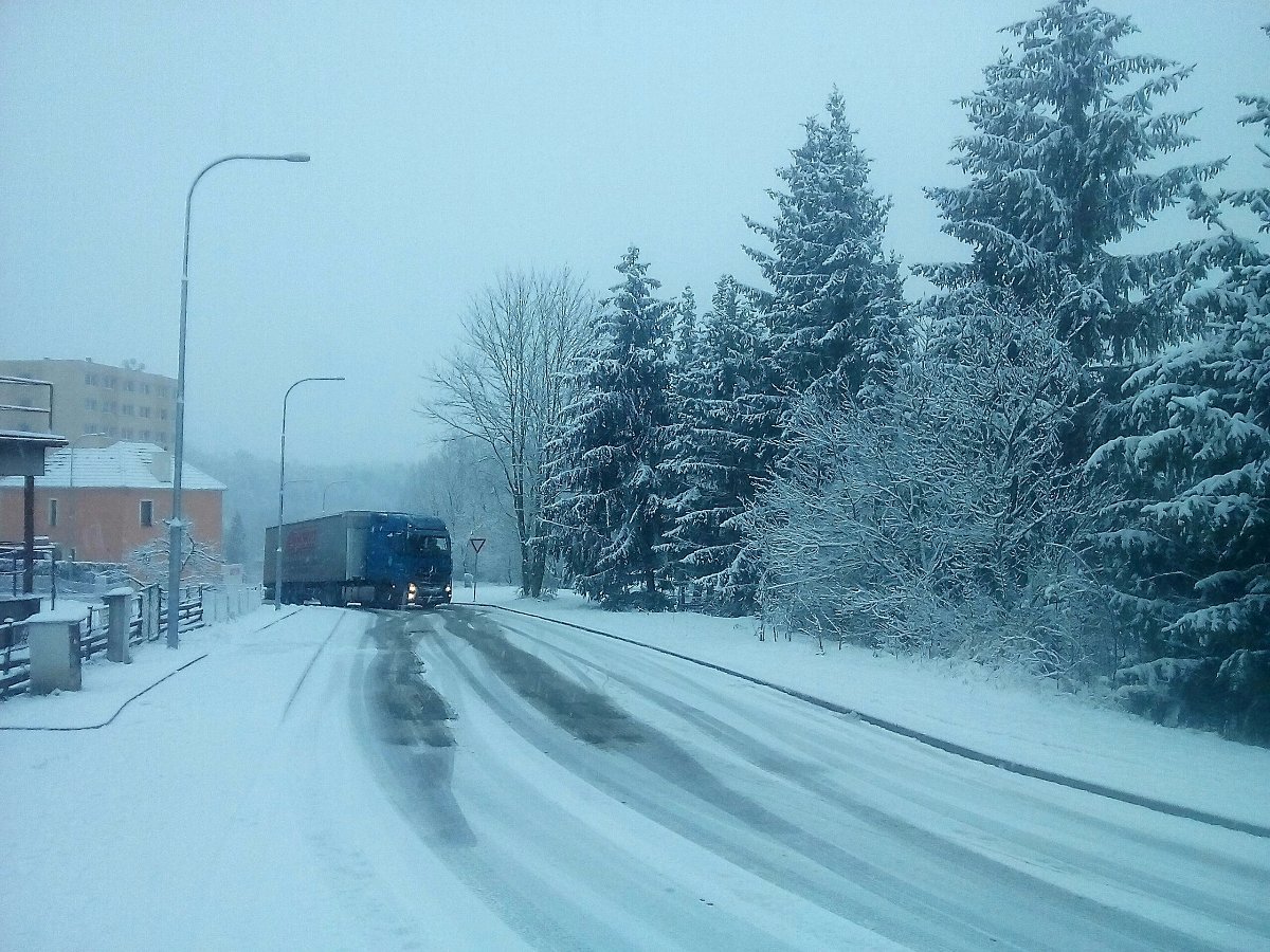 Trvalé sněžení, klidno Dohlednost 800m