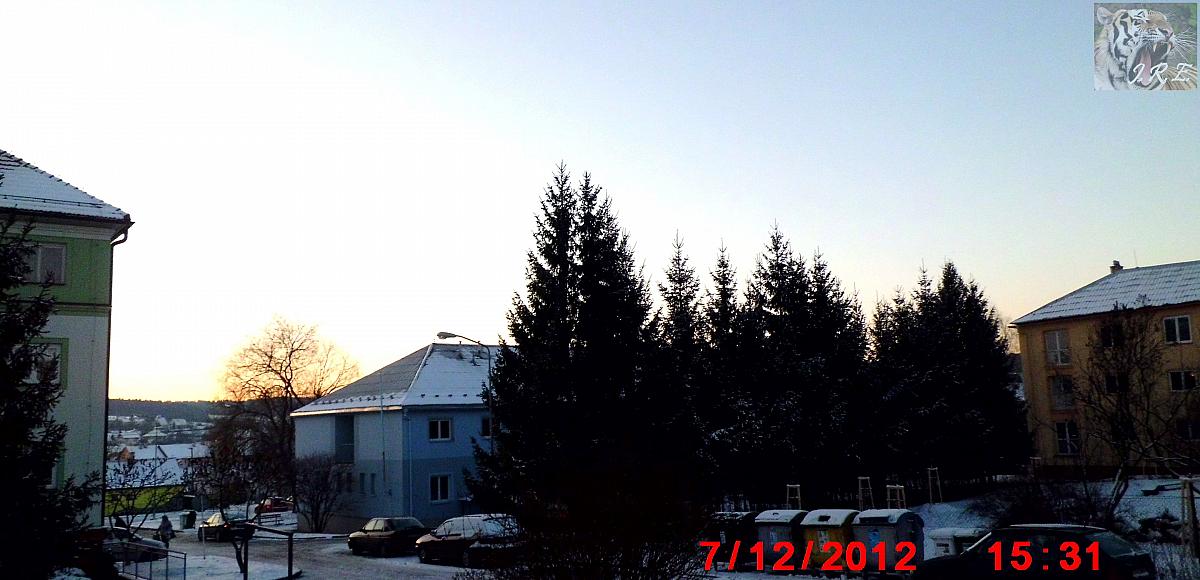 sníh ze včerejška se drží, fotka z 2012 12 07 v 11:35 ukazuje jak je krásně, když svítí na sníh sluníčko - teplota byla -2°, ráno v 8 hodin -5°