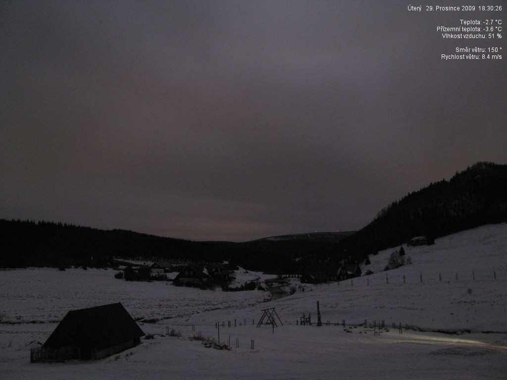 Je těsně nad nulou. Po ranních mrazech se moc neoteplilo ani přes den, když jsme káceli stromy kolem rybníku...Ve stínu mrzlo až do odpoledne. Teprve teď se začíná měnit počasí...