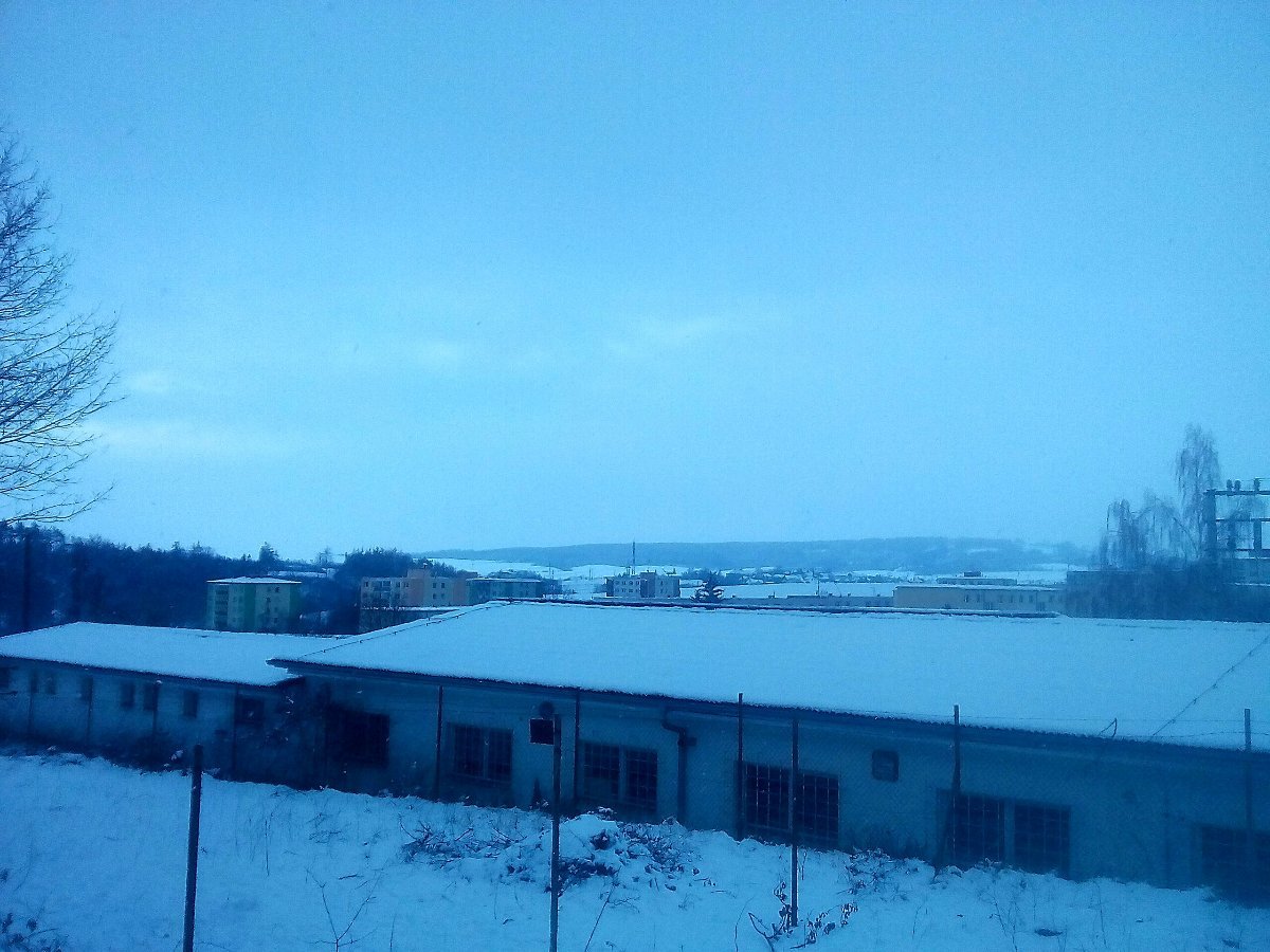 Sněhové přeháňky Mokrý sníh do 1 cm. Mírný SZ vítr.