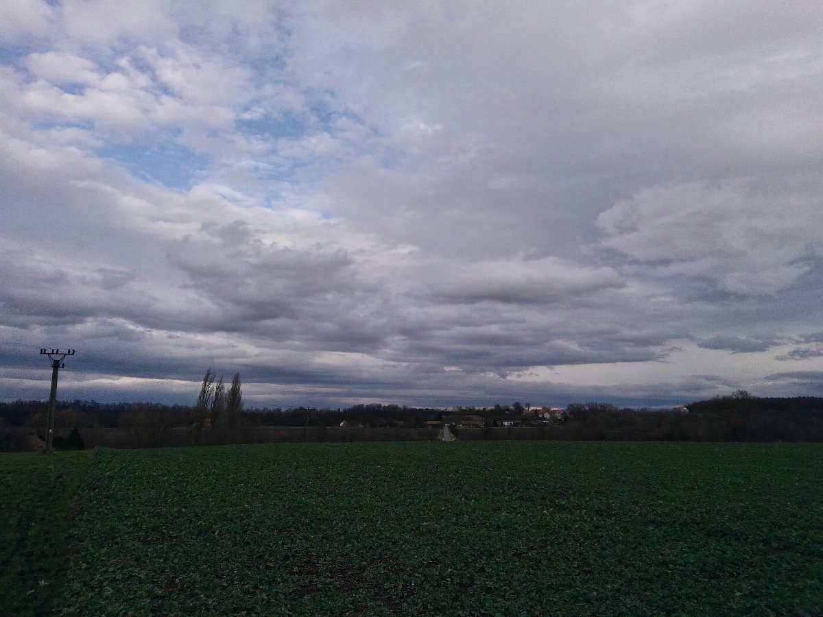Západní větřík, tlak 1005,3 hPa a vlhkost 77 %.
