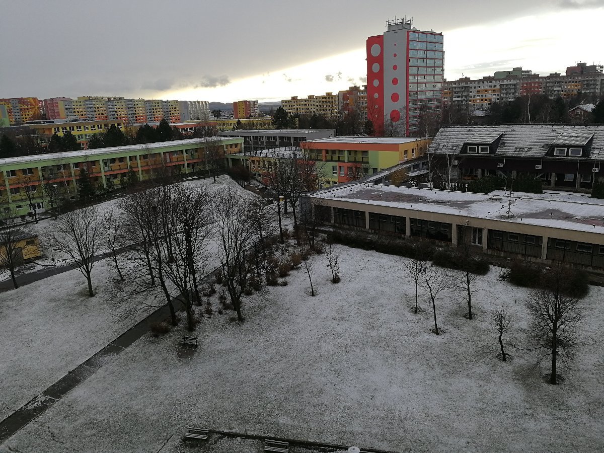 Tlak 999 hPa, vlhkost 74%, mírný vítr 7 m/s od JJV