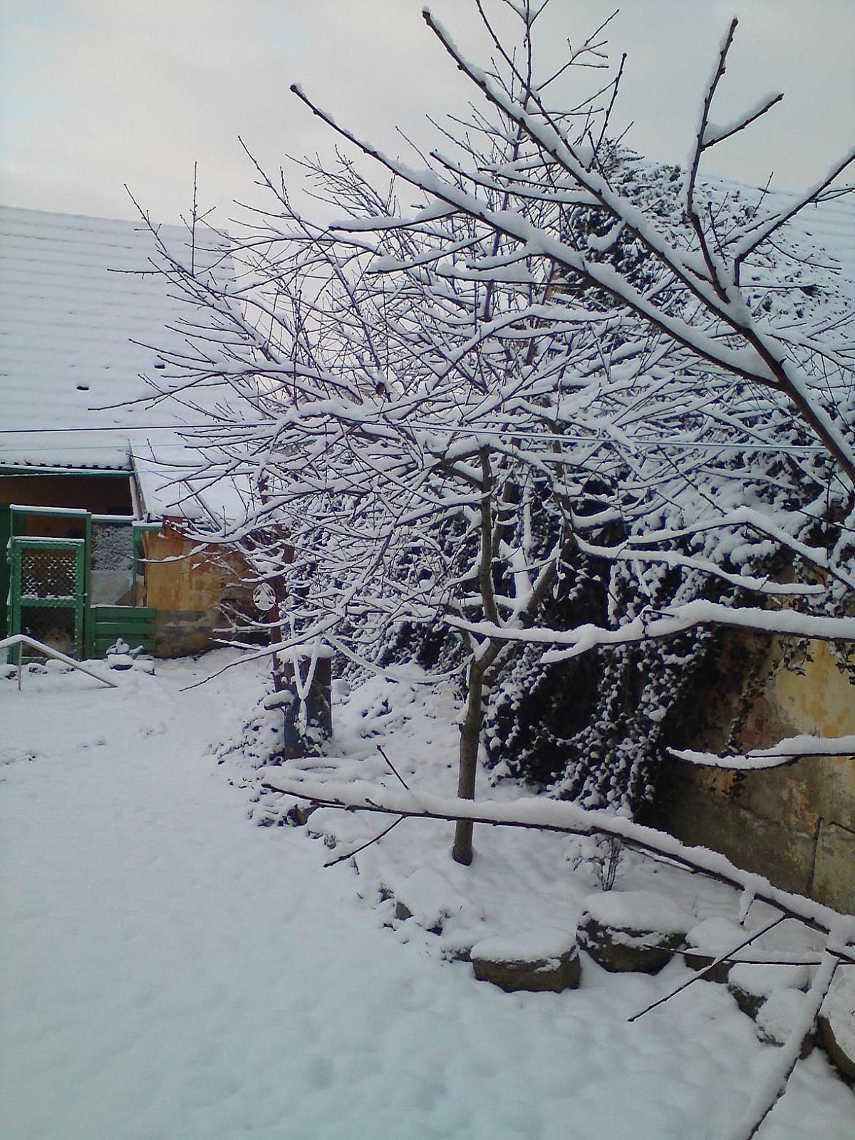 Začíná opět sněžit, na fotce sněhová pokrývka na severním předměstí.