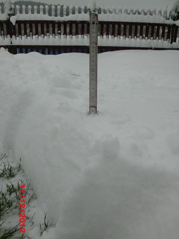 Slabé sněžení, vítr severozápadní okolo 9 km/hod, tlak 1012 HPa,.