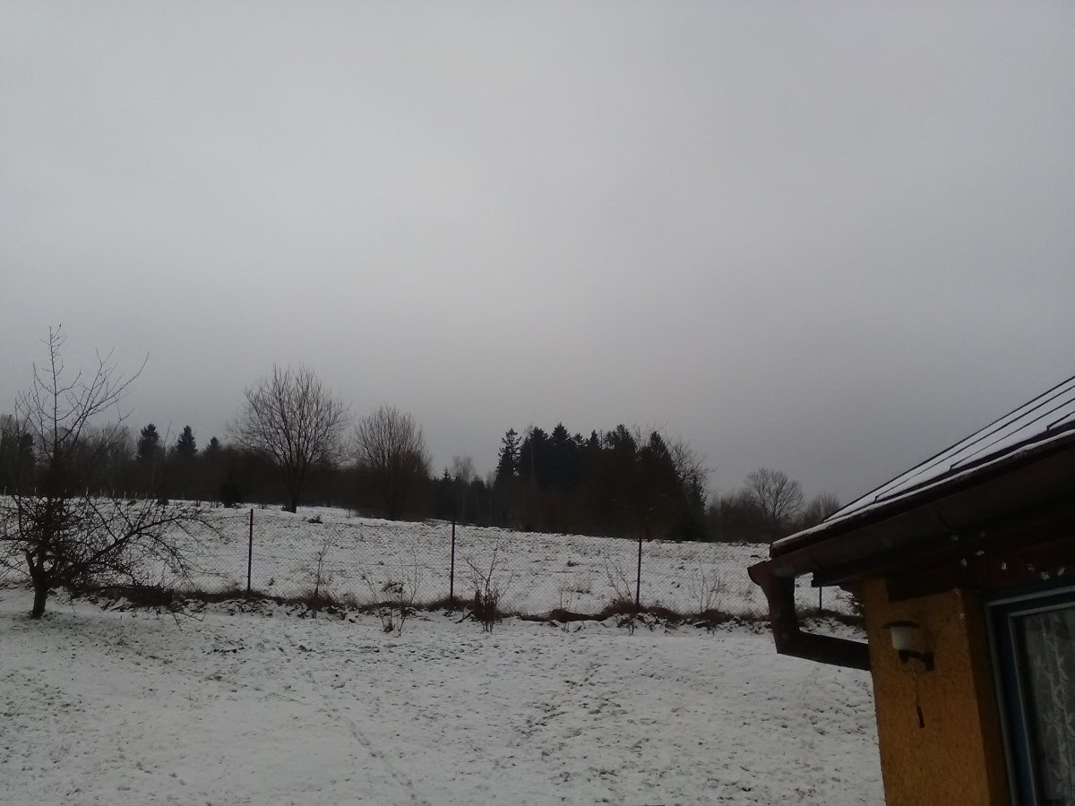 Klidno,tlak 1025 hPa,vlhkost 93%,dnešní šediváček..