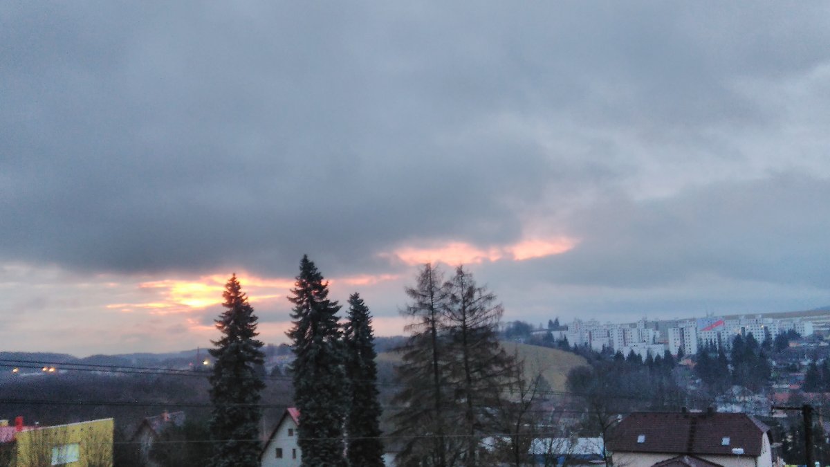 Zatím se sníh celkem drží, od západu fouká jen nepatrný vánek, tlak: 1030 hPa.