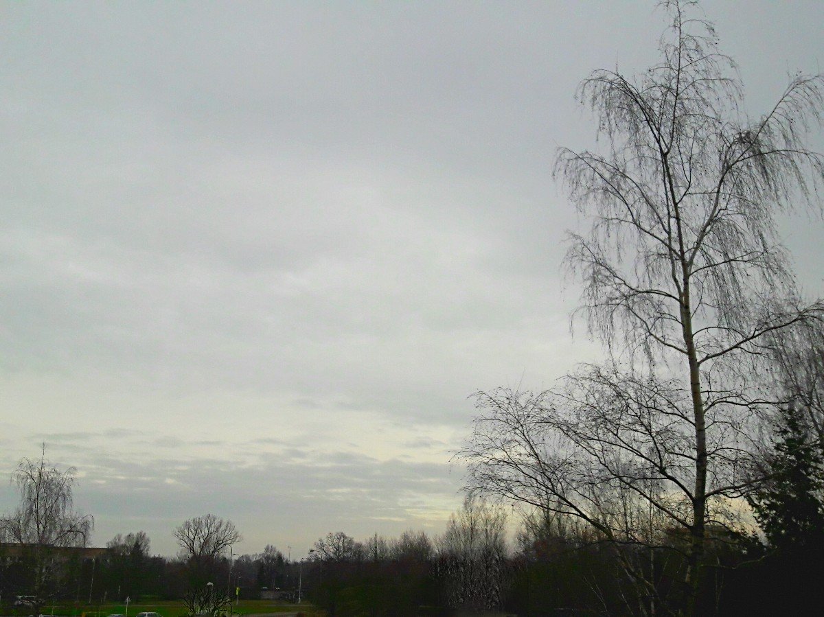 V noci lehce přimrzlo a sníh se tak ještě drží. Vane slabý jižní vítr, tlak 1027 hPa.