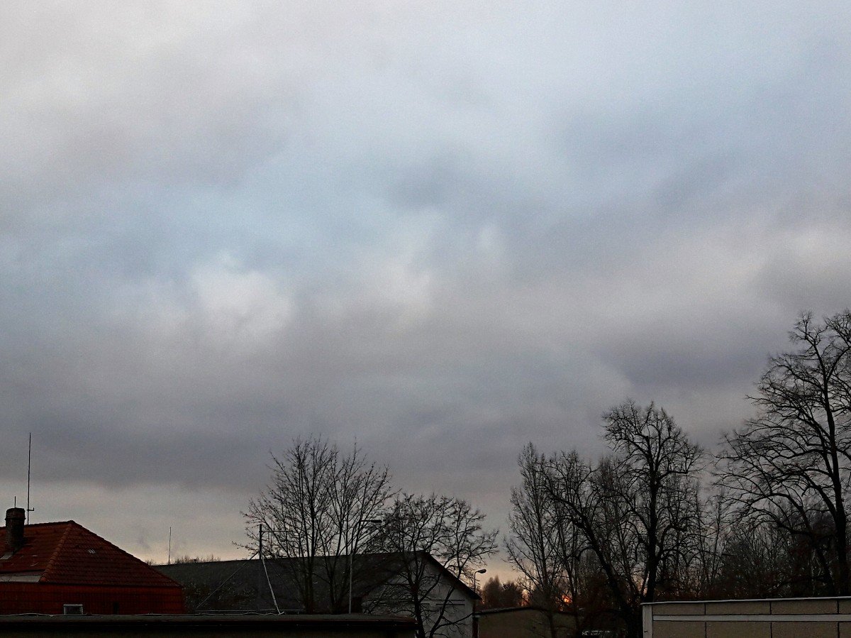 Klidno,tlak 1015 hPa,západ Slunce do vysoké oblačnosti.