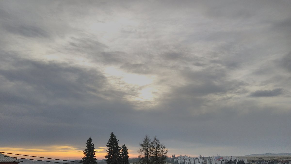 Oblačno, vítr J 1,4 m/s, tlak 999 hPa klesá.