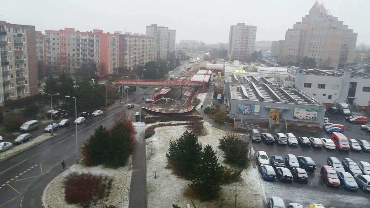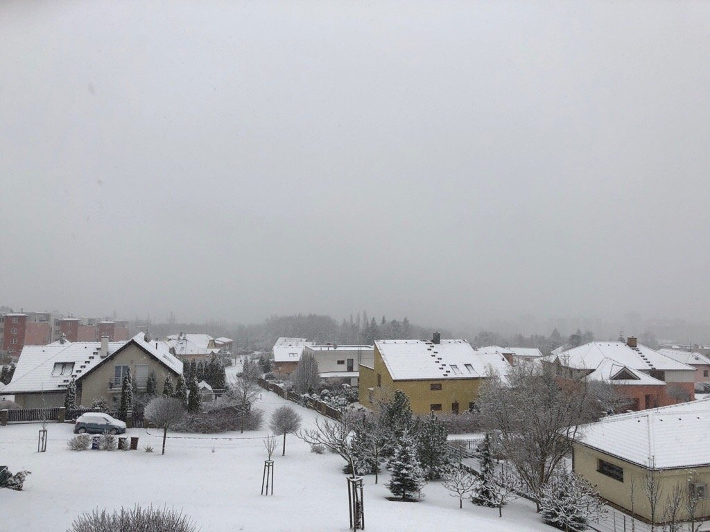 Mírné sněžení s klesající intenzitou.