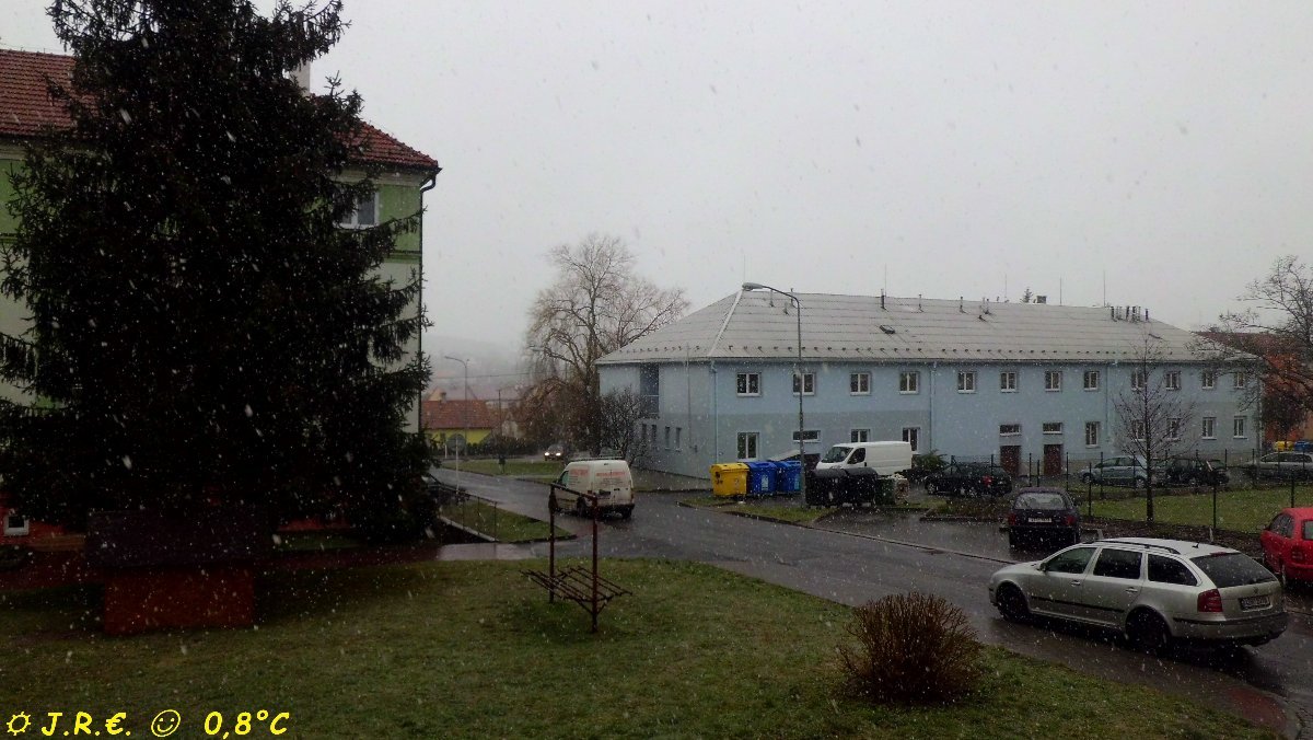 Přes noc začalo sněžit, napadlo 5 cm sněhu, někde jsme dokonce naměřili 7 cm. Aktuálně sněžit pomalu přestává.