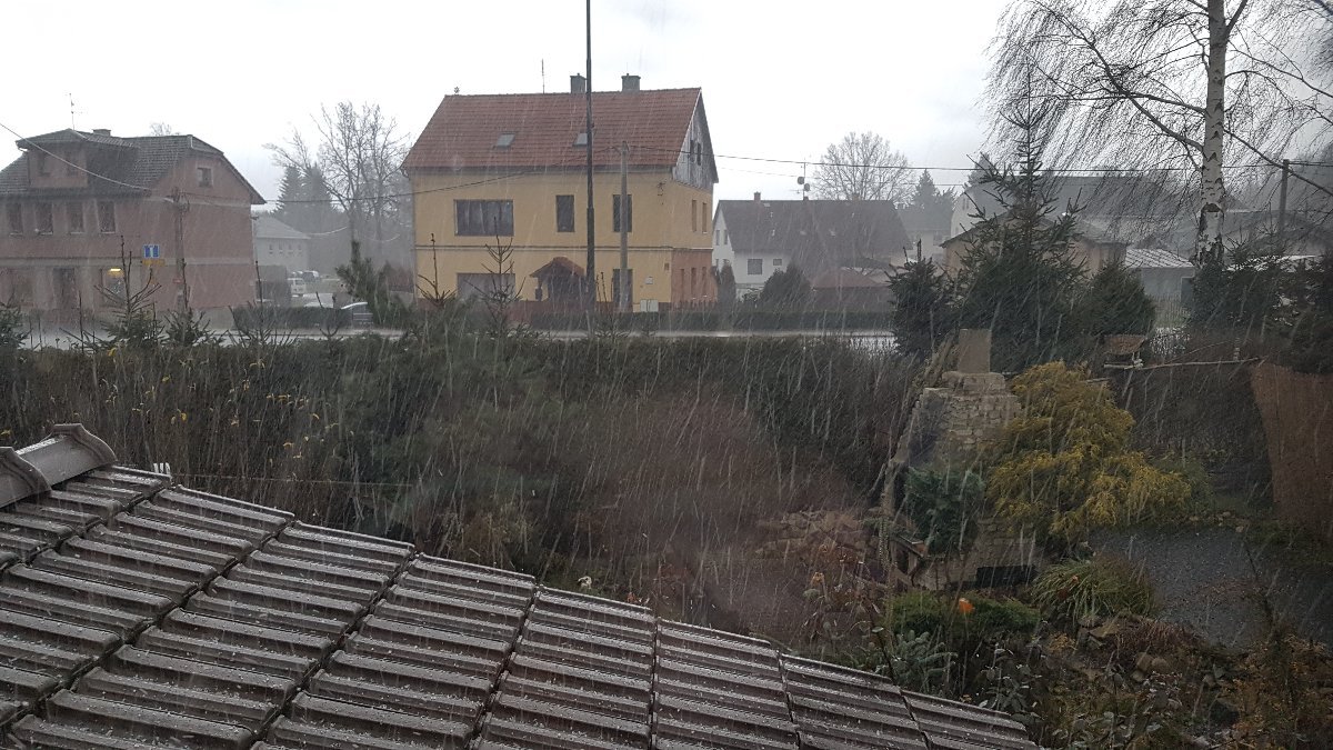 Zamračené a slabé až mierne sneženie,silno veterno!