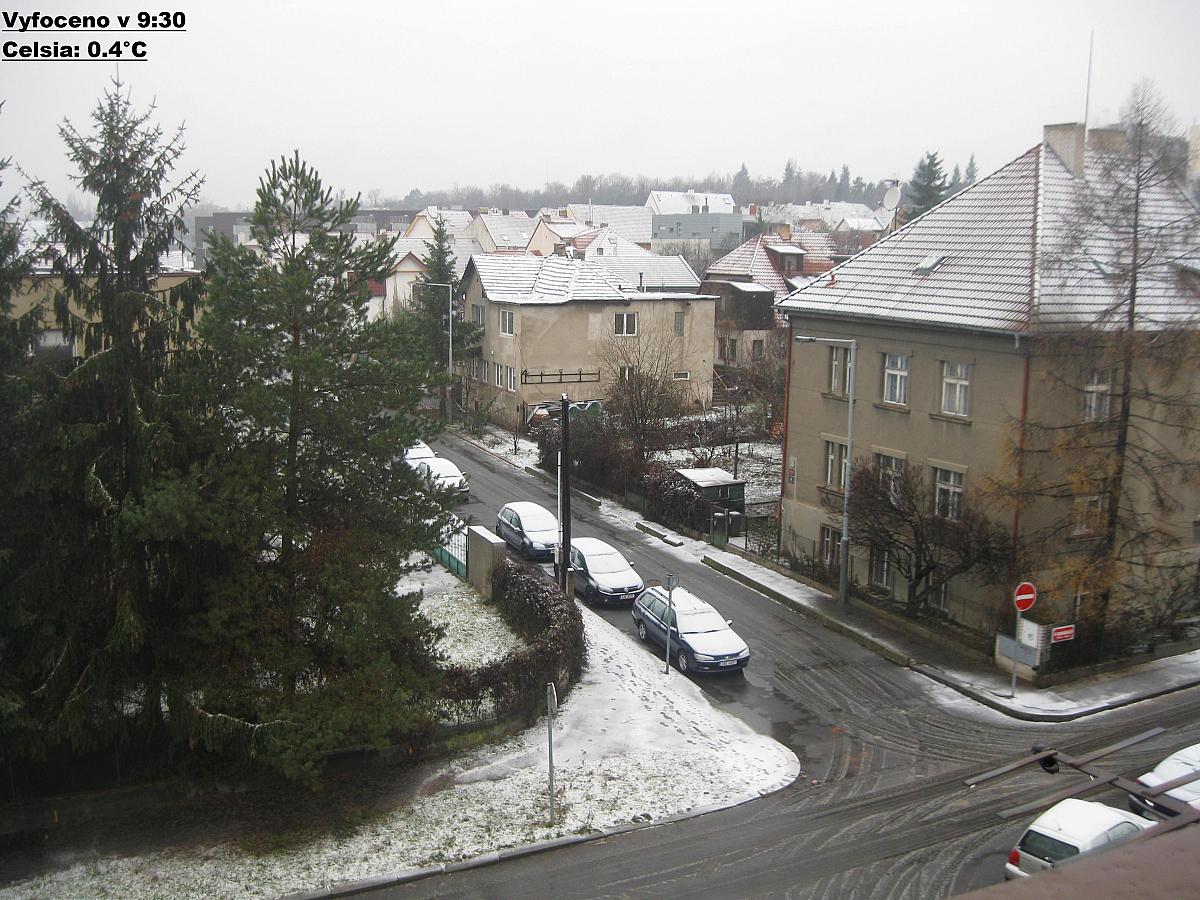 Zataženo, drobně sněží, tlak 1017,7hPa, dohlednost 2km, vlhkost 91,1%, vítr VJV 3,1m/s, zákl.mraků 579m.