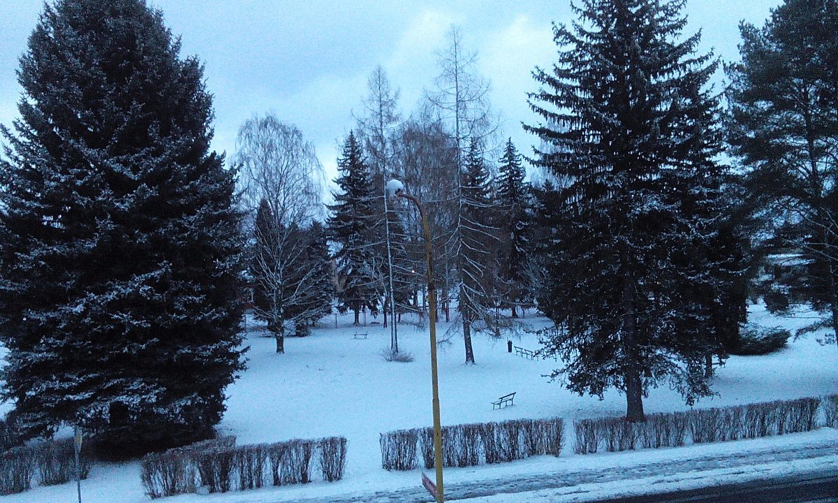 Ve 3 hodiny přešla silná sněhová přeháňka a o půl hodiny později přišlo silné sněžení. Aktuálně slabě sněží. Vane mírný severozápadní vítr, tlak 997hPa, vlhkost 98%.