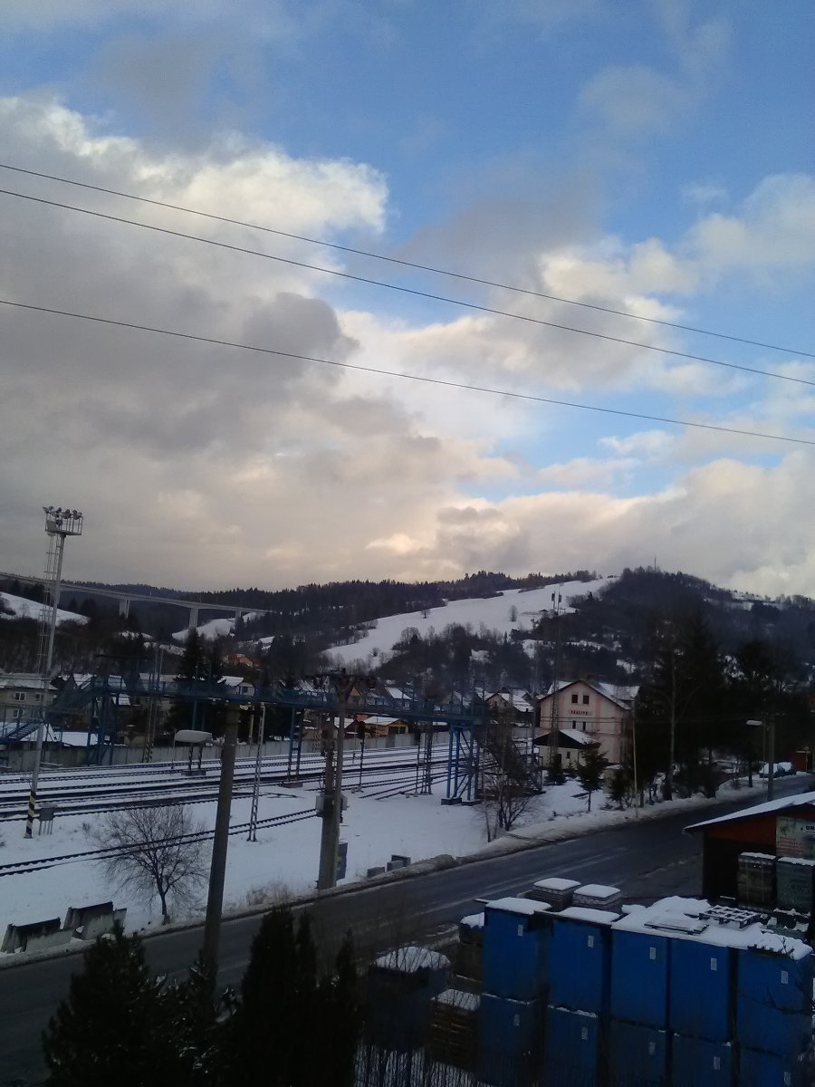 Okolo poledne sněžilo. Aktuálně polojasno. Vane mírný severozápadní vítr 12,2km/h, tlak 1002hPa, vlhkost 76%.